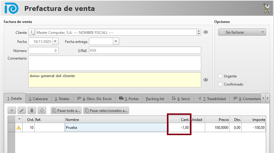 Se crea una copia de la factura donde la cantidad de todas las líneas de detalle cambiara su signo.
