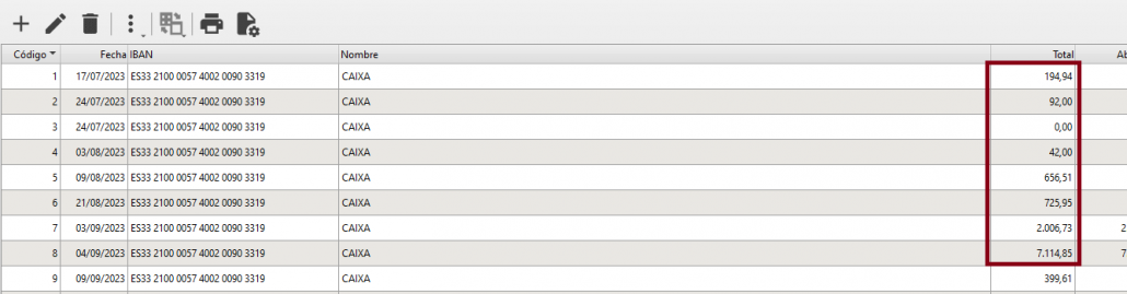 Hacemos clic en la columna importe.