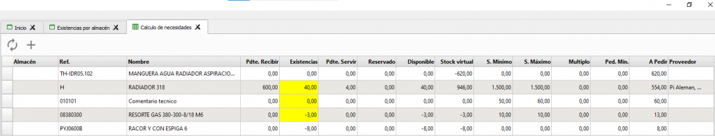Seleccionamos los artículos que nos interesen y pulsa el botón + para generar los pedidos de compra.