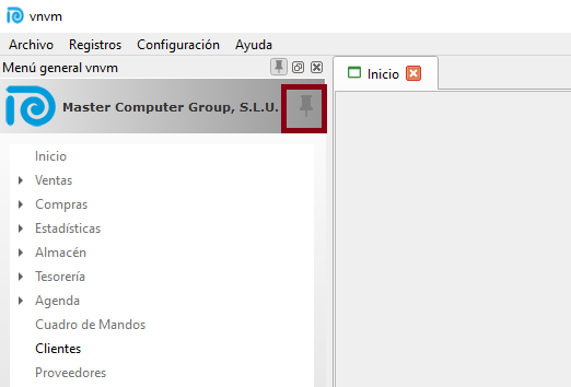 Haciendo clic en la chincheta marcada en rojo, podemos ocultar una parte del menú, para que la pantalla se vea más grande.