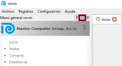 También podemos ocultar el menú completamente haciendo clic en el siguiente icono y nos quedará oculto, con una leyenda vertical para acceder al menú general, que se activará pasando el ratón por encima.